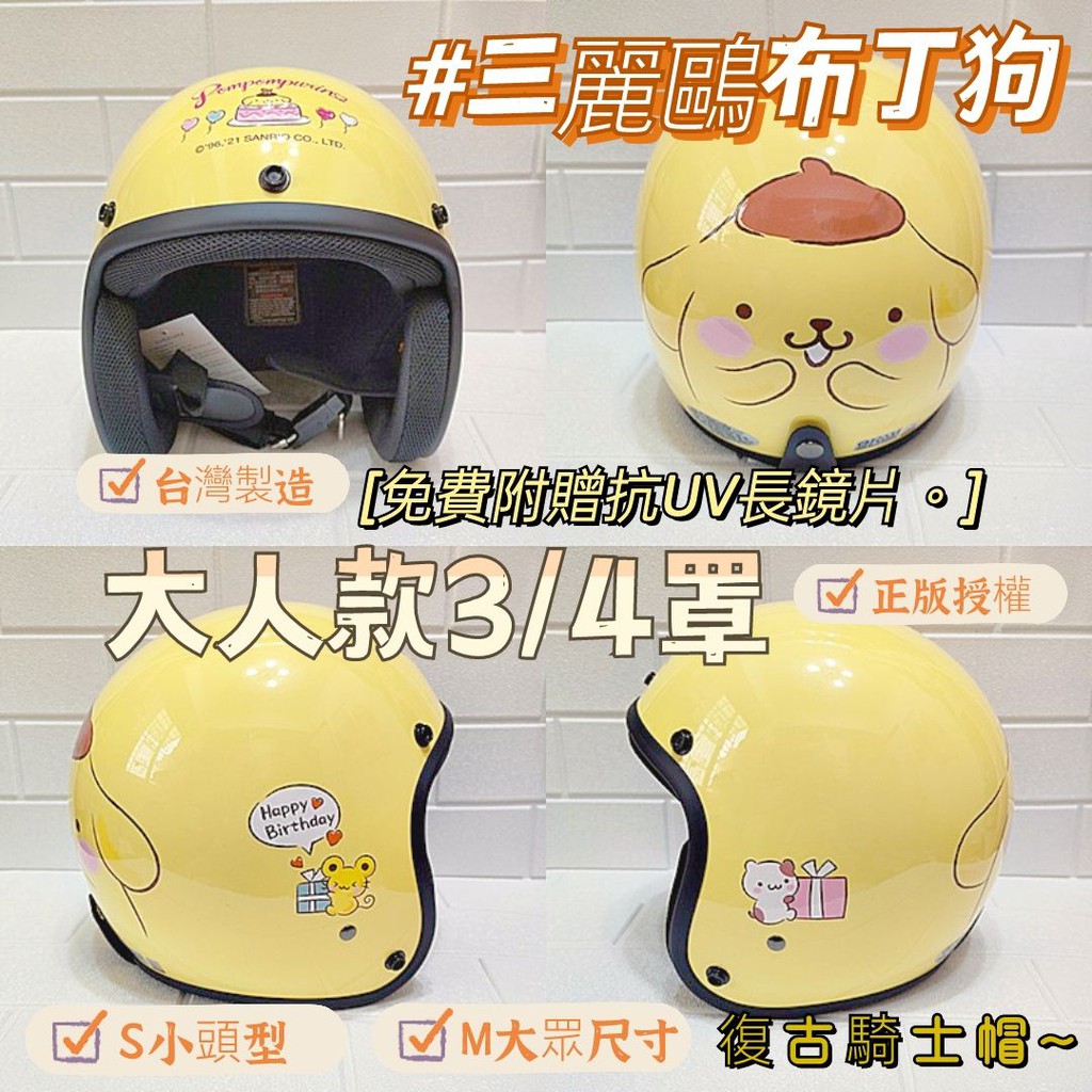加贈抗uv鏡片布丁狗奶黃亮面三麗鷗正版授權安全帽3 4罩805 內襯可拆復古帽半罩帽kk 耀瑪騎士 耀瑪騎士生活館 Rakuten樂天市場
